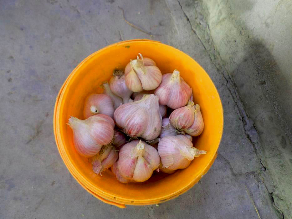 Убранный чеснок необходимо положить в тень, под навес, подальше от прямых солнечных лучей. Его сушат около 14 дней. По истечению срока аккуратно, чтобы не повредить целостность головки, убирается земля с чеснока. Срезается стебель, корни. Поврежденный чеснок лучше перебрать, и если есть еще возможность, использовать в пищу.