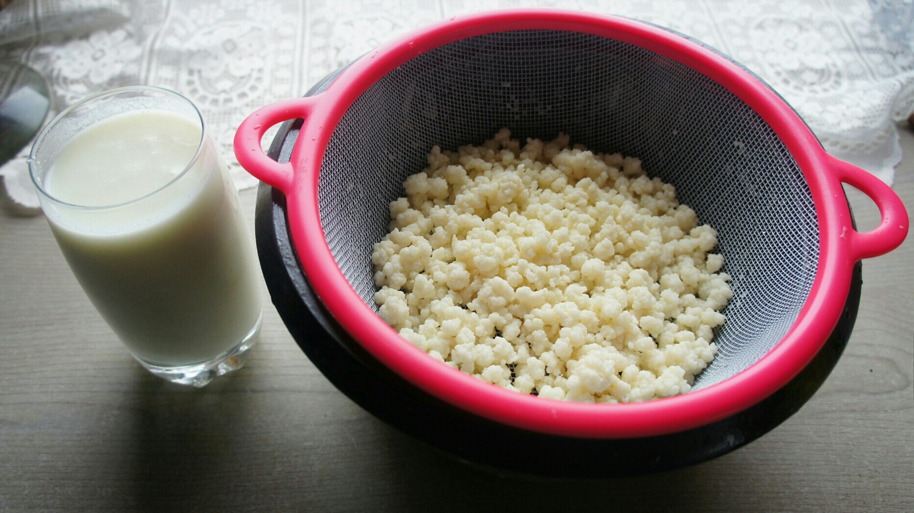 Эту процедуру повторите еще 2-3 раза, после чего используйте цельное молоко. Через 4-5 дней напиток должен приобрести привычный вкус и аромат. Теперь заливайте молочный гриб молоком и настаивайте сутки, чтобы получить вкусный и полезный кефир.