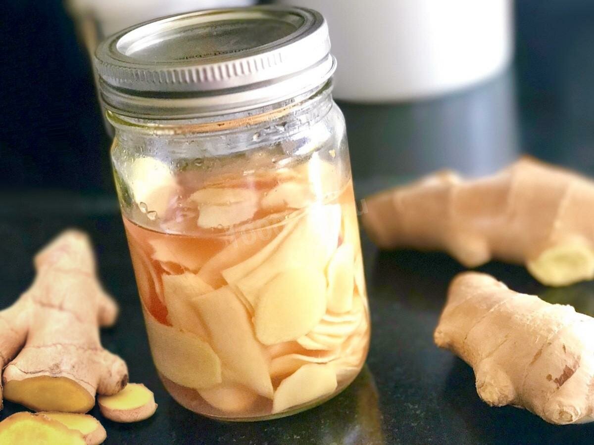 Можно также залить имбирь не вином, а спиртом или водкой. Тогда спустя два месяца его опять-таки возможно будет использовать в кулинарных целях, но кроме него получится еще и имбирная настойка, которую можно будет в небольших количествах добавлять в сиропы, фруктовые напитки или чай, либо использовать в медицинских целях.