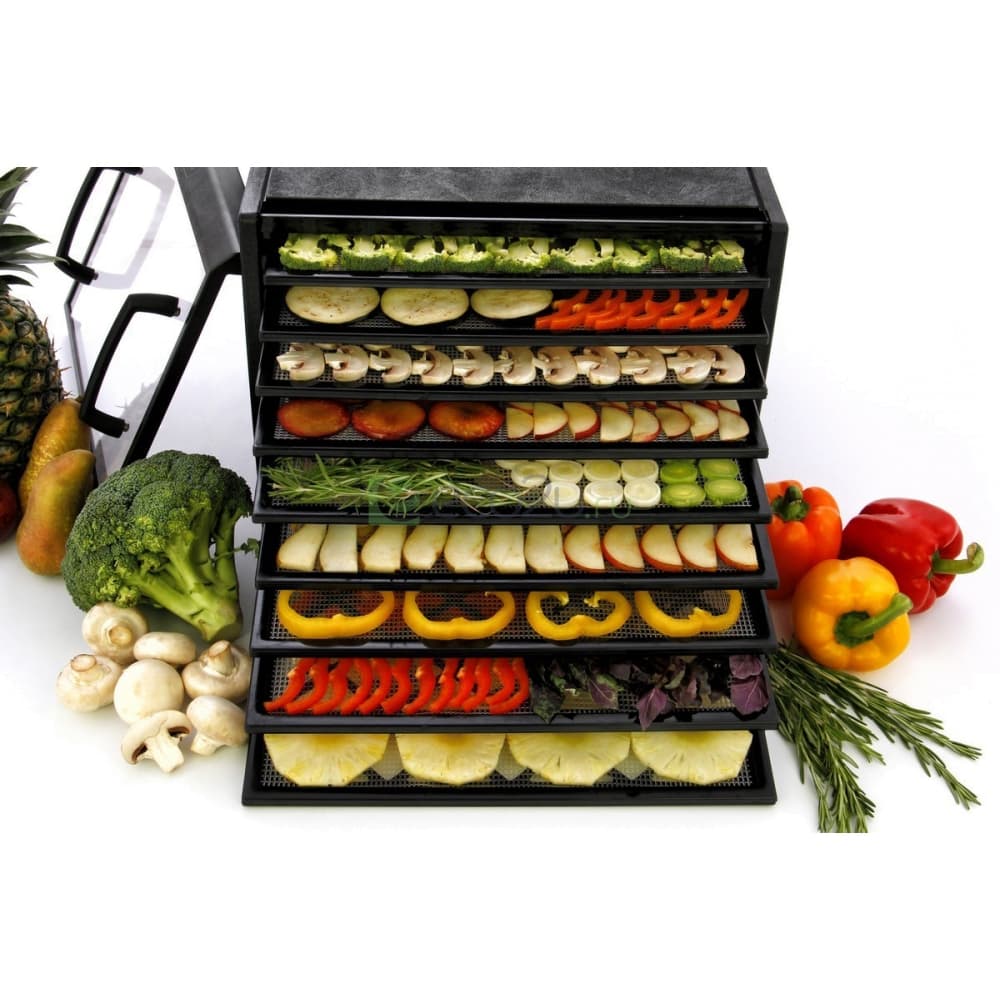 Он поставляется с девятью лотками, поэтому, как и ожидалось, занимает большую площадь. Но эта модель была разработана для тех, кто серьезно относится к обезвоживанию, благодаря обилию прилагаемых аксессуаров.