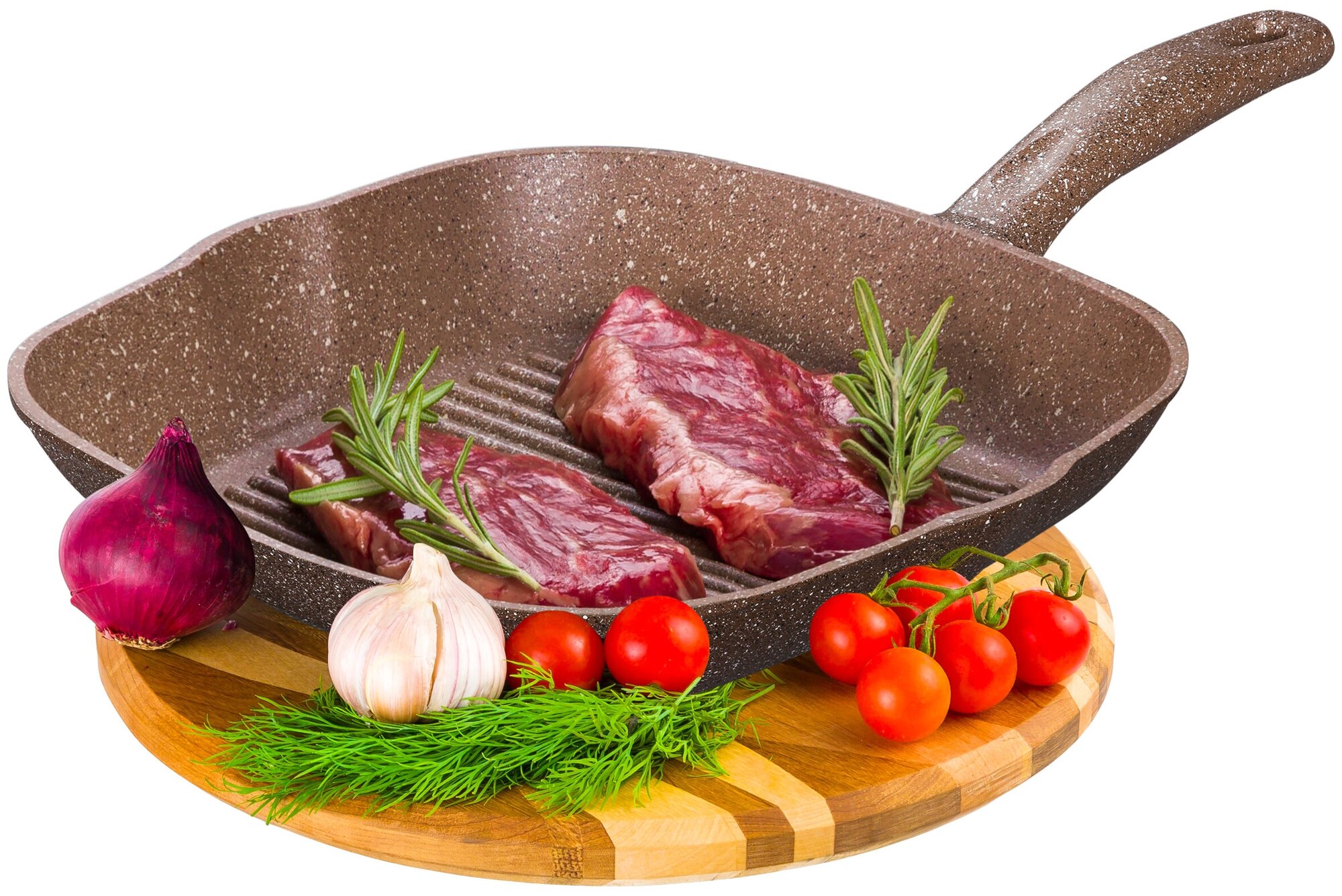Устали от однообразных блюд? Сковорода-гриль может помочь вам вывести приготовление пищи на новый уровень! Стейки из мяса, птицы или рыбы получатся сочными, овощи-гриль сохранят свежесть и все полезные свойства, а благодаря ребристой поверхности лишний жир не попадет на тарелку, он просто останется в сковороде. Красивые полосочки, образовавшиеся во время жарки, украсят любое блюдо и сделают его очень аппетитным.