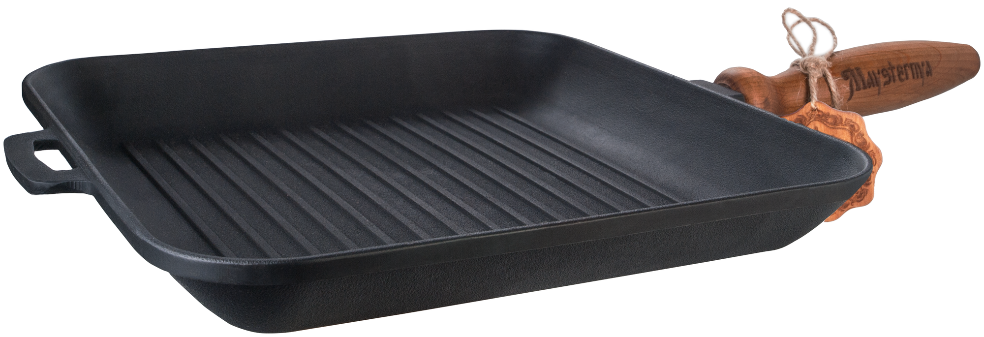 Чугунная сковорода гриль это идеальный выбор. Она нагревается равномерно, долго сохраняет тепло.