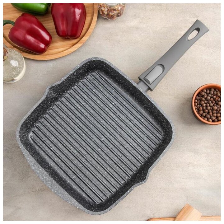 3. Квадратная сковорода-гриль GREY STONE 28×4,3 см (алюминий, Арт.