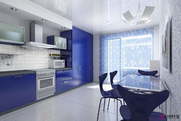 Если светлые оттенки создают спокойную атмосферу в помещении, то яркая цветовая гамма делает обстановку динамичной, живой, эффектной. Насыщенные цвета улучшают настроение, заряжают энергией, помогают бороться с депрессией, некоторые из них могут улучшать аппетит. В интерьере кухни интересно смотрится сочетание оранжевого с синим оттенком, одну из стен можно оформить белым кирпичом.