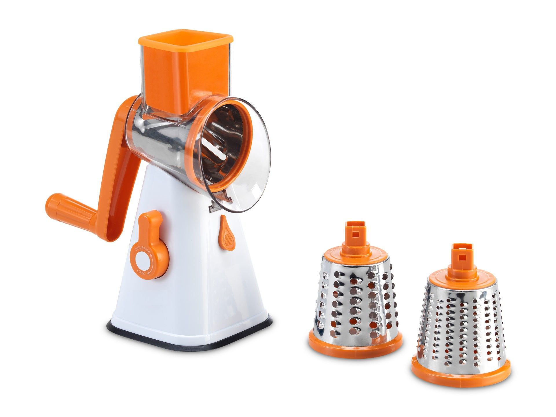 - Мощный. Кривошипная ручка увеличивает ваши усилия, чтобы быстрее нарезать пищу. Конструкция с двойным лезвием сокращает количество раз при каждом обороте.