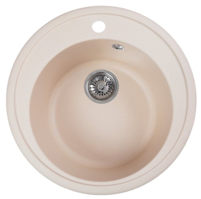 Поверхность матовая. Глубина составляет 21 сантиметра, ширина и длина – по 51 сантиметру. Одно отверстие под смеситель, при желании можно дополнительно установить измельчитель продуктов.