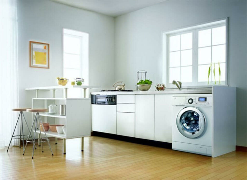 Как разместить стиральную машину на маленькой кухне?
