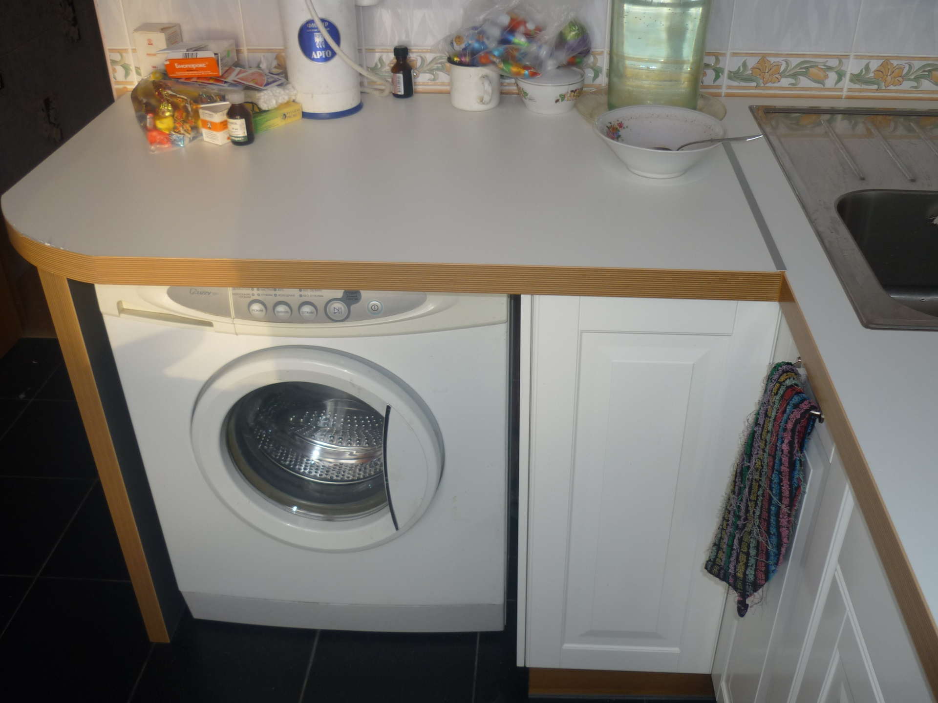 машинка под столешницей и в угловом кухонном гарнитуре.