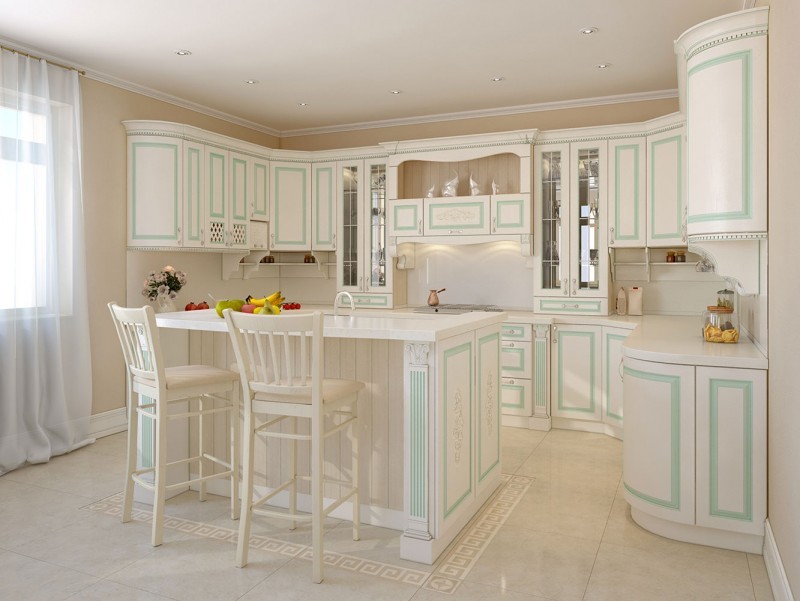 Такой дизайн особенно подходит для таких стилей, как американский, скандинавский, классический, кантри и прованс. Это решение для просторных кухонь-гостиных, потому что конструкция займет довольно много пространства.