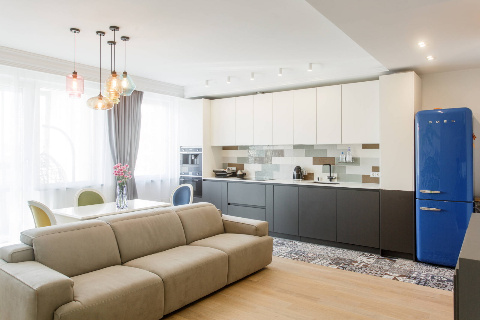 - смена стиля. Прекрасно, если фасады мебели и текстиль можно легко и быстро поменять. Это позволяет освежить интерьер в любое время без больших затрат и необходимость полностью менять отделку поверхностей. Лучше выбирать для пола, стен и потолка нейтральные оттенки;