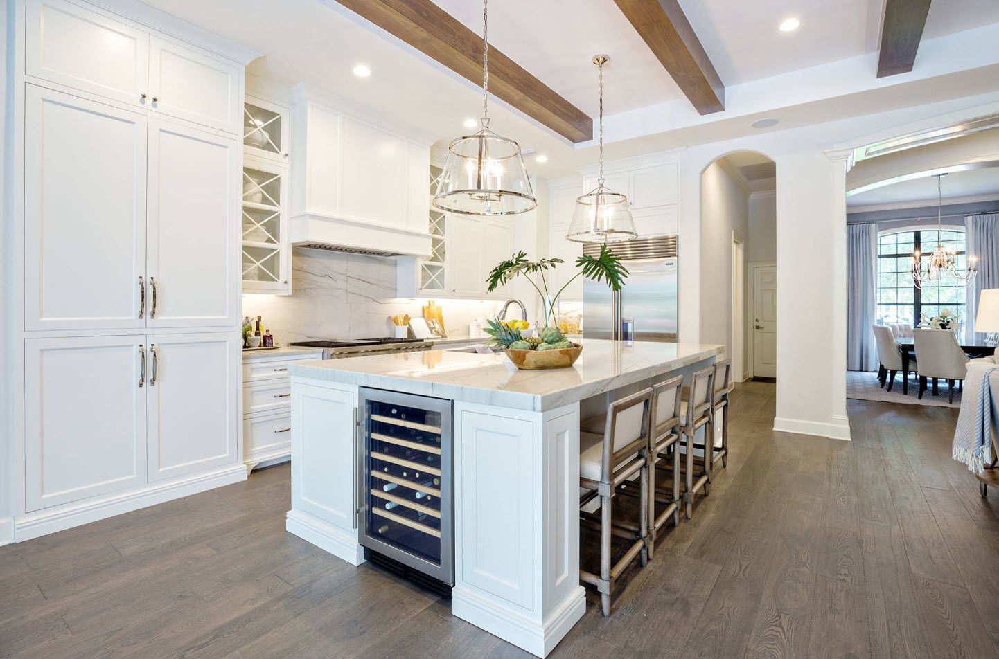 Барная стойка позволит ей быть удобным местом для перекусов нескольких человек, только когда она большая, а дизайн сквозной.