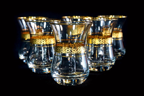 В коллекциях чешских производителей представлены красивые прозрачные и матовые армуды из хрусталя с позолотой. Для европейцев есть наборы восточных стаканчиков с ручками.