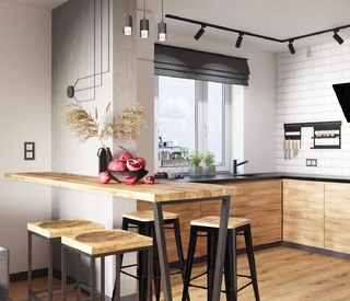 При этом пространство под стойкой можно использовать для установки кухонной техники или систем хранения. Некоторые модели уже имеют встроенные ящики. Нередко стойки довольно высокие, поэтому к ним потребуются соответствующие стулья на длинных ножках, чтобы можно было удобно устроиться. Если в вашей квартире совмещенная кухня-гостиная, то столешницу можно использовать как инструмент зонирования, визуально разделив рабочую зону для готовки и место отдыха.