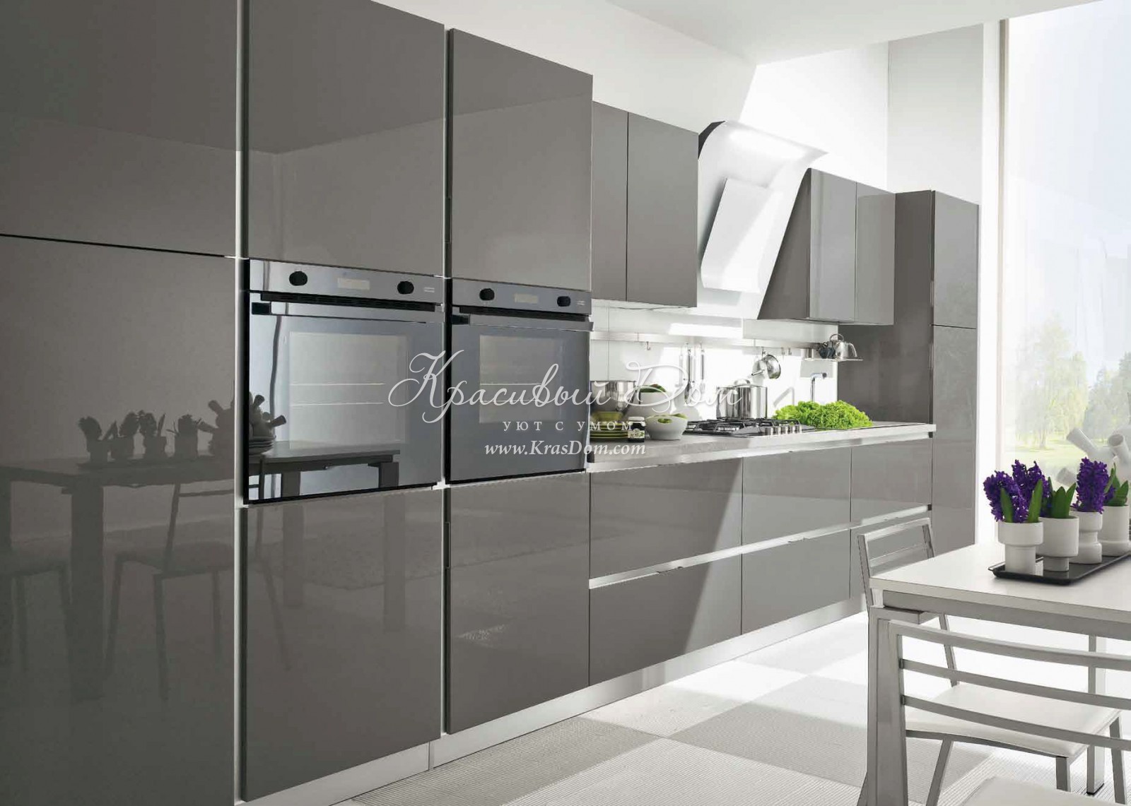 Лак — лакированная поверхность может иметь практически любой оттенок и иметь различные «спецэффекты», такие как жемчуг, металлик или хамелеон. Также глянцевая краска для кухонных шкафов может быть разного цвета. В то же время лакированные поверхности не очень износостойкие, уязвимы для пара, воды, тепла, ультрафиолетовых лучей и довольно легко поцарапаны. Однако при необходимости покрытие можно перекрасить.Двери шкафов, покрытые лаком высокой степени, могут быть не только плоскими, но и профилированными, или даже изогнутыми. Окрашенные в глянцевый лак кухонные шкафы — самые дорогие.