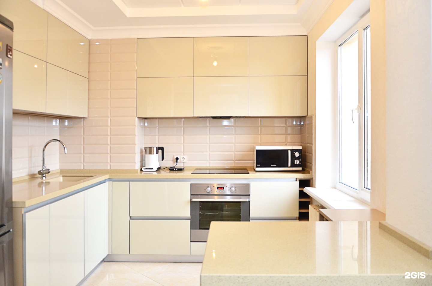 В том случае, если окна выходят на южную (солнечную) сторону, выбирайте беж холодной гаммы. Чтобы «согреть» плохо освещаемое помещение, нужно разбавить его теплыми оттенками (крем-брюле или солома). - В контексте цветовых температур большую роль играют и текстуры, которые использованы в интерьере. Дерево может добавить уюта и нежности, а стекло и хромированные детали создадут глянцевый эффект и сделают кухню более строгой.