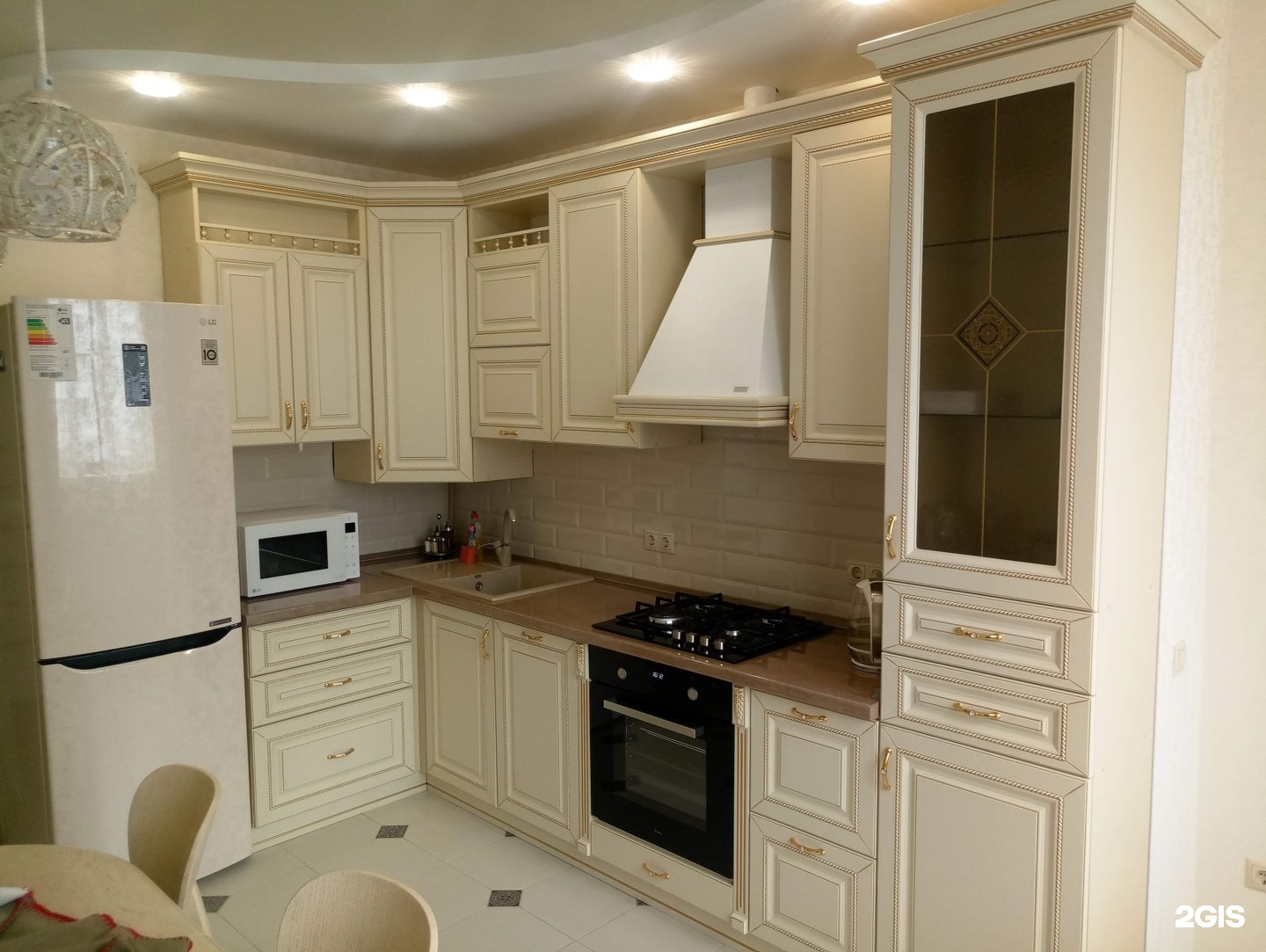 Привлекает безупречная лаконичность кухни с решением стен в светло-песочном тоне людей уверенных и основательных, тяготеющих к домашнему комфорту. Пол в такой ситуации может иметь кофейный колер, повторяющийся на фартуке и столешницах. Светло-золотистые мебельные фасады достойно поддержат общее настроение. Идеально впишется Beko RCSK380M20B холодильник бежевый, цвет которого может гармонировать с вытяжкой и повторяться в орнаментальных мотивах штор и обивки стульев.