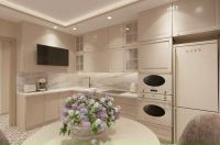 Желание иметь безупречный сдержанный интерьер часто подвигает к выбору бежевых тонов и при обустройстве кухонь гостиных.