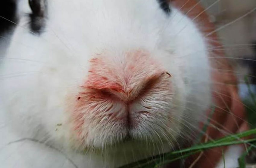 Если у вашего кролика текут глаза и насморк, и он периодически чихает, то у него может быть аллергия на что-то в клетке. Попробуйте поменять местами используемые постельные принадлежности и следите за ситуацией.