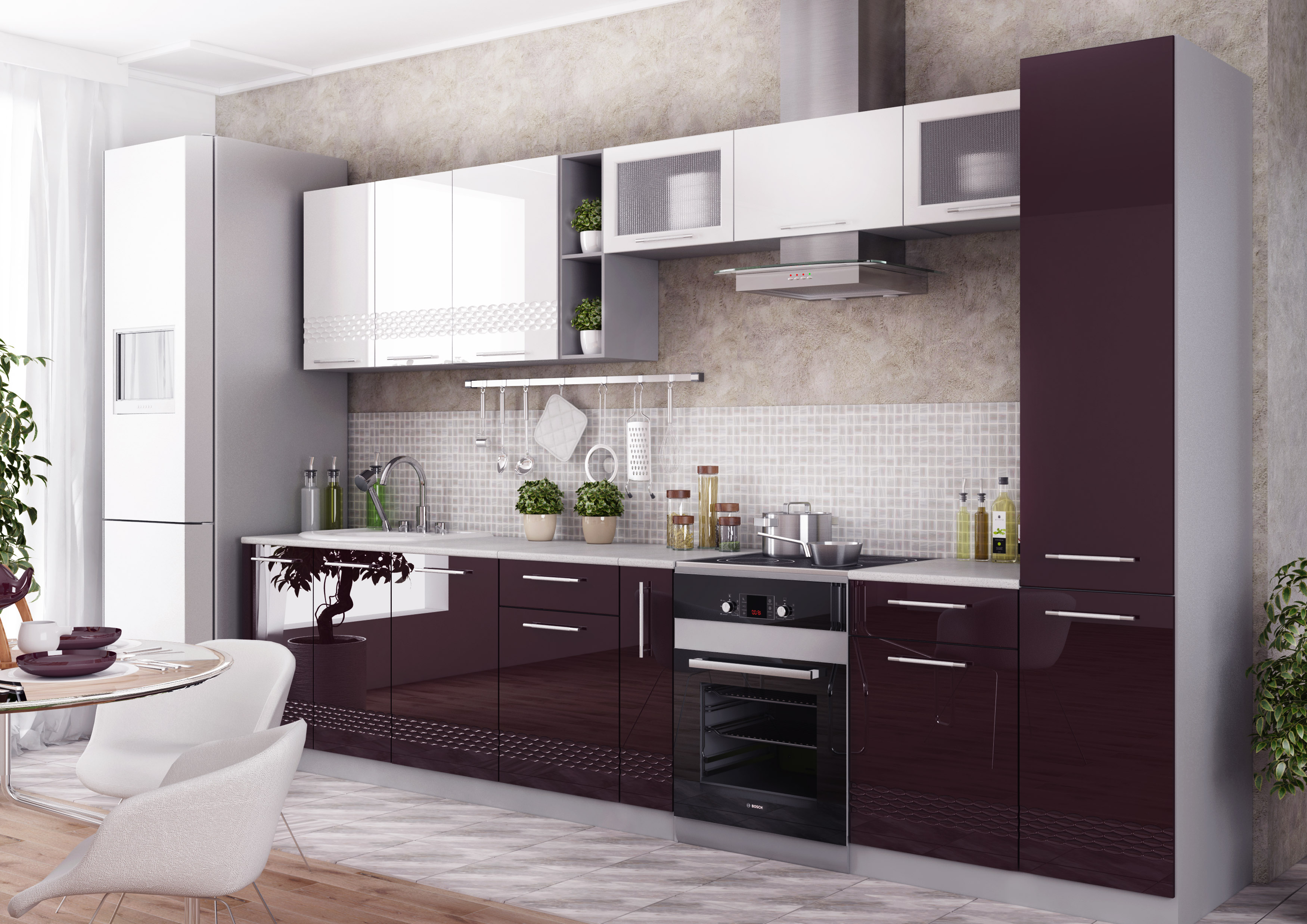 Глянцевые фасады, которые используются для отделки кухни, могут быть покрыты разными материалами: пластиком, краской, пленкой ПВХ, акрилом.