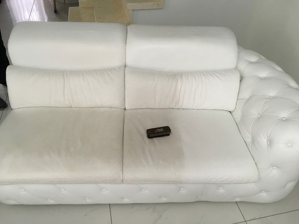 После обработки щеткой диван сразу же необходимо пропылесосить для удаления жидкости.