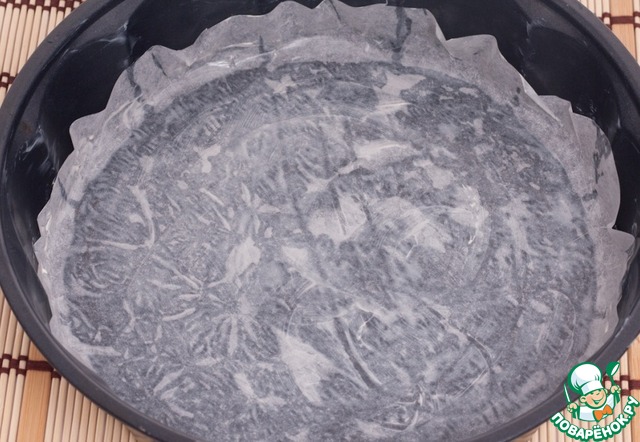 Смажьте кусочком сливочного масла дно формы. Для равномерного распределения жира, воспользуйтесь бумажной салфеткой или кусочком пергаментной бумаги.