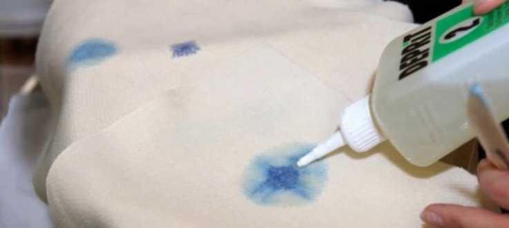 Средства бытовой химии справляются с авторучкой, наибольшую эффективность показал отбеливатель для одежды с хлором — белизна. Необходимо намочить в составе ватную палочку, с большой осторожностью обработать чернила и подождать около 15-20 минут. Если следы удалось свести, нужно промокнуть обработанный участок влажным ватным диском или губкой, после чего накрыть чистой хлопчатобумажной тканью и прогладить горячим утюгом.