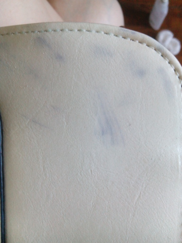 Хорошо справляется с отметками от ручки и обычный глицерин. Однако он может высветлить тёмную кожу, поэтому данный способ лучше применять для светлых диванов, сумок и курток.
