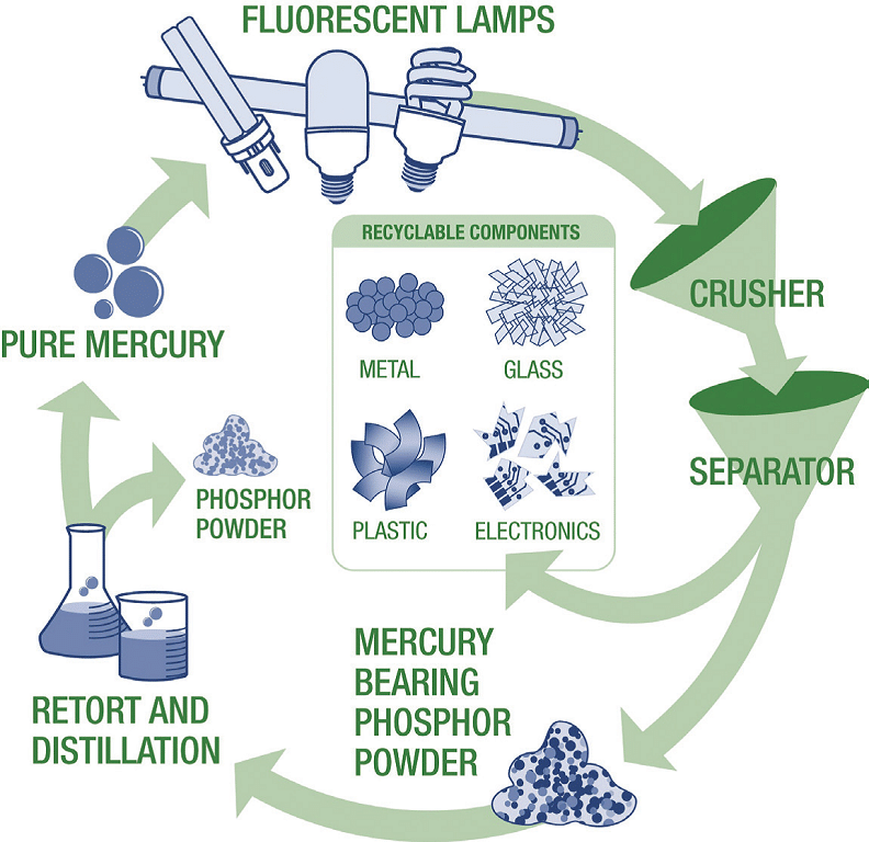 Ртуть является важным элементом люминесцентных ламп и позволяет лампе быть эффективным источником света.Ртуть токсична как для людей, так и для окружающей среды. Следовательно, с использованными люминесцентными лампами и лампами HID необходимо обращаться должным образом, поскольку они содержат ртуть.