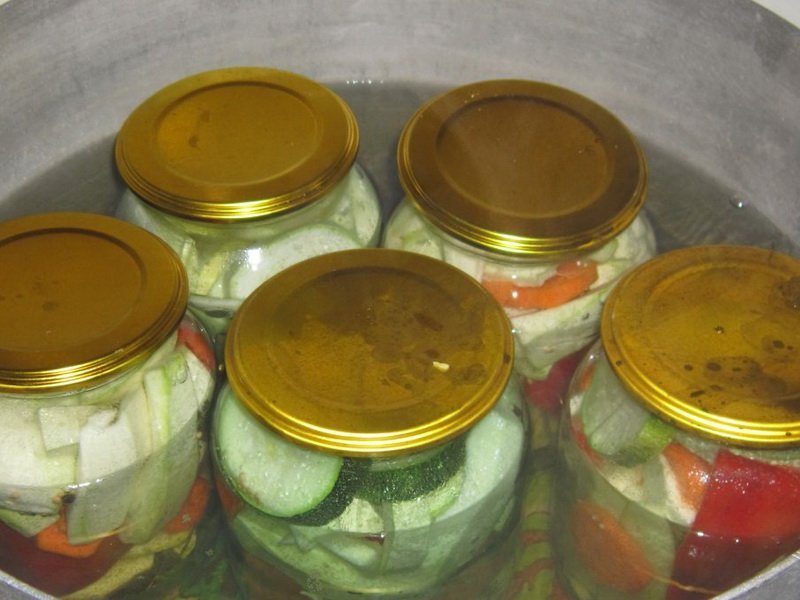 Чтобы стерилизовать банку с салатом, на это уйдет немного дольше времени.