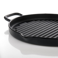 Французский бренд Staub, пожалуй, больше всего известен своими универсальными кокотками, но производительность его чугунной сковороды-гриля не менее впечатляет.Он предварительно заправлен и имеет высокие толстые гребни, доходящие до края сковороды. Чтобы нагреться, потребовалось около пяти минут, и хотя пища изначально прилипала к выступам, она соскальзывала после приготовления, оставляя темные, ровные и четко очерченные следы от гриля. Мясо имело великолепную прожарку, было богатым и карамелизованным. Однако ручки сильно нагреваются, поэтому вам понадобится кухонное полотенце, чтобы переместить их. К тому же он очень тяжелый.