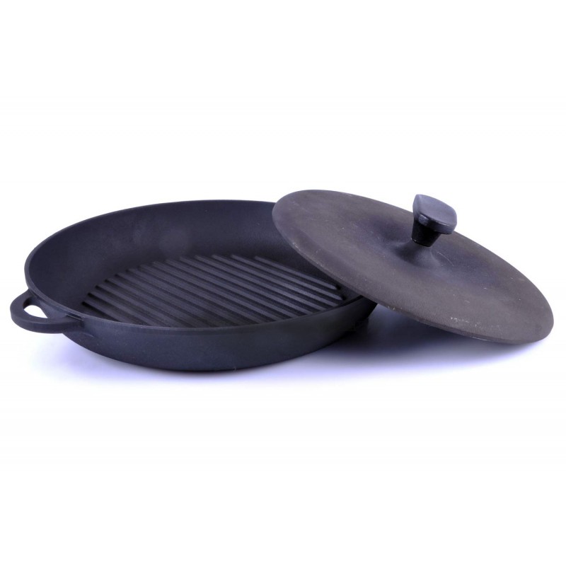 Чугунная сковорода-гриль с крышкой (прессом): что это такое?