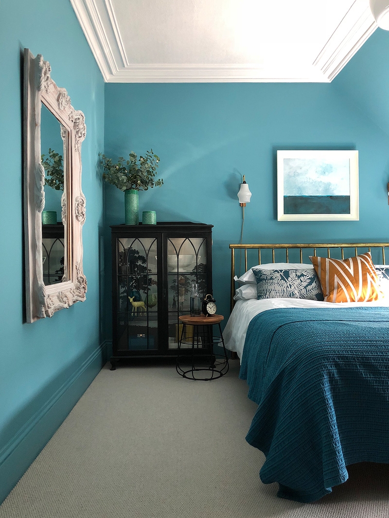 Цвет морской волны замечательно подойдет для спальни, так как обладает умиротворяющим, успокаивающим, очищающими свойствами. Если вас беспокоит бессонница, то все оттенки синего как нельзя лучше будут способствовать переходу в царство Морфея.