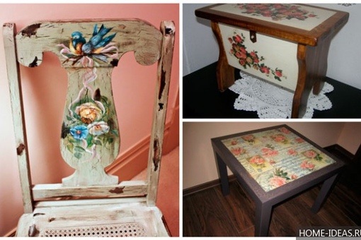 Опробовав свои силы на простых вещах, можно смело приступать к декупажу мебели своими руками салфетками.