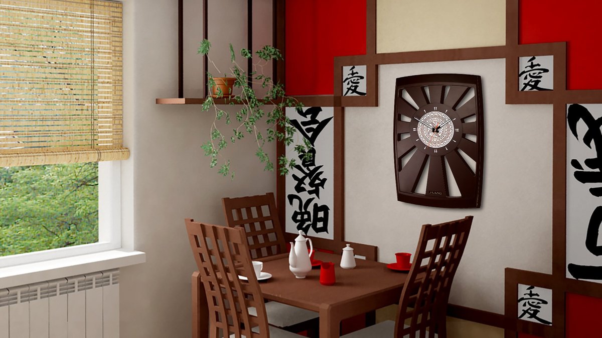 Что касается предметов декора, то на кухне, оформленной в данном стиле, лучше не размещать их большое количество. Так, например, здесь будут вполне уместны небольшой металлический котёл кустарного производства, набор японской посуды, японские ножи или набор палочек, можно развесить бумажные фонари или поставить нэцкэ. В любом случае, желательно, чтобы каждый элемент декора работал — ножи должны резать, а кухонная посуда использоваться по прямому назначению.