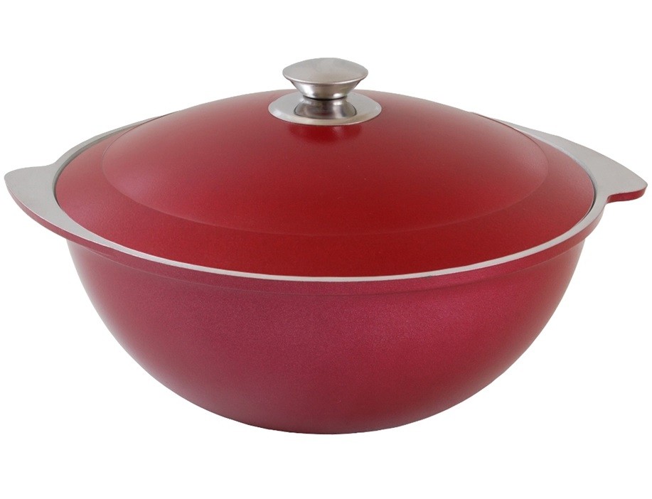 При всех своих несомненных достоинствах, чугунная посуда все-таки имеет один недостаток, который для кого-то может оказаться достаточно существенным — она тяжелая. Если вес имеет для вас значение, стоит обратить внимание на модели казанов и кастрюль из алюминиевых сплавов. Важно, чтобы это была не штампованная, а литая посуда с толстым дном и стенками. Метод литья помогает добиться высокого качества поверхности посуды, а также отсутствия внутренних дефектов. Алюминиевый казан обязательно должен иметь покрытие — например, компания Scanpan предлагает модели с антипригарным керамо-титановым покрытием Green Tek.