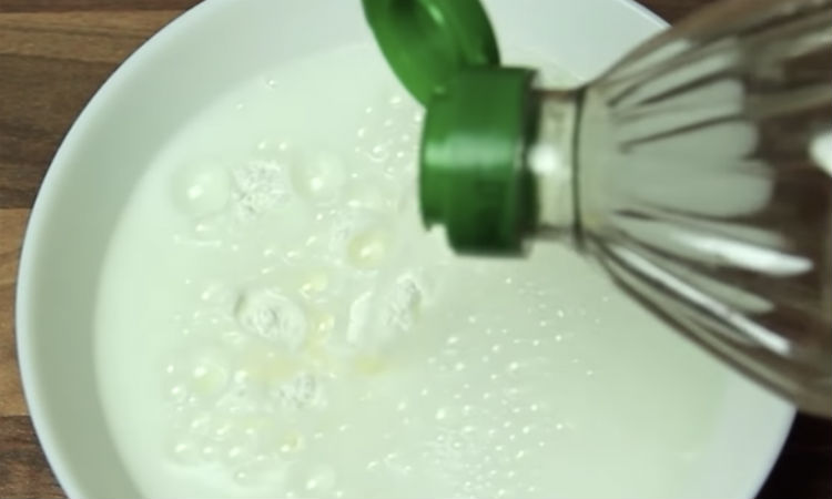 В результате соединения нашего раствора и уксуса образовывается химическая реакция. Вы заметите небольшое шипение, и это говорит о том, что процесс очистки идет, как надо.