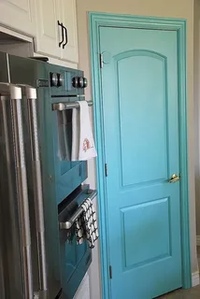Ее открывают и закрывают чаще, чем любую другую дверь в нашем доме, и иногда грязные руки. Это также дверь, в которую врезается больше всего машинок.Но мне это нравится, потому что он скрывает хаос неорганизованных предметов кладовой, которые прямо за ним.