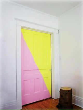 Залейте латексную эмалевую краску в поддон для краски. Нанесите эмаль на дверь малярным валиком, работая сверху вниз. Прокрасьте края двери маленькой кисточкой.