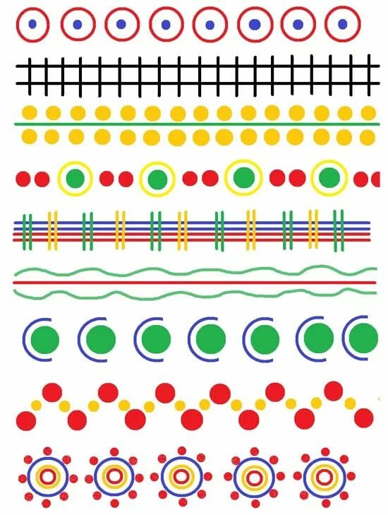При ритмическом повторении одного или нескольких элементов узора появляется простой или переменный ряд узора. Так как ряд узора не закончен, он создает впечатление неопределенного, распадающегося рисунка (рис.