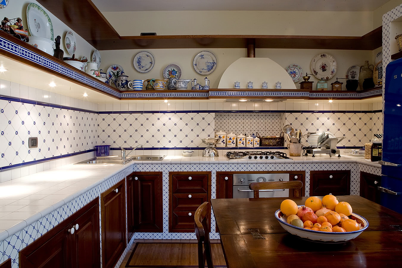 Украшением кухни в стиле прованс является рабочая стена — фартук. Во многих интерьерах именно он задает тон и погружает в атмосферу солнечного юга. На кухне хозяева проводят много времени, особенно если нет отдельной столовой. Поэтому очень важно создать такую атмосферу, чтобы она была расслабляющей и уютной, настраивающей на приятное проведение времени в кругу семьи и близких. Добиться такого эффекта можно, оформив помещение в прованском стиле.