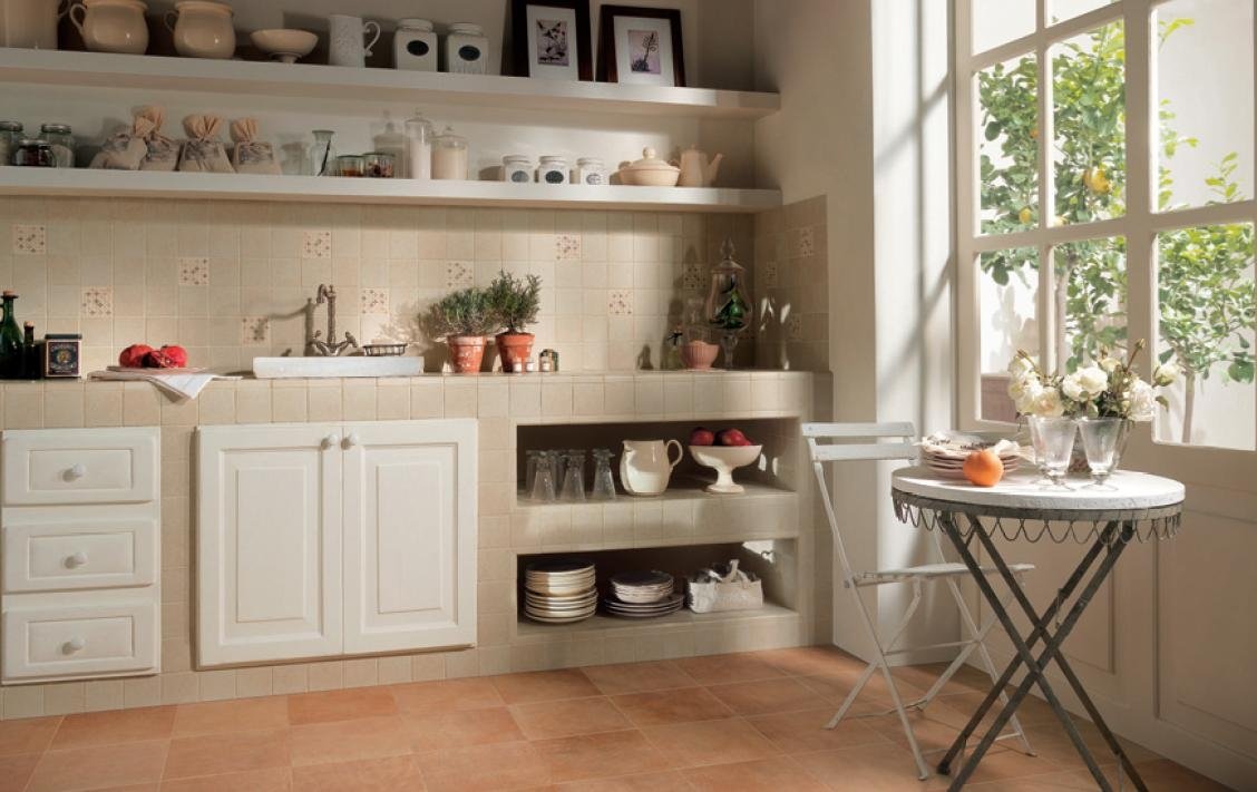 Плитку для фартука в стиле Прованс советуем брать керамическую.
