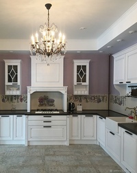 Почему мы советуем только плитку? Металл не подходит для Прованса, так как металлическая поверхность слишком далека от провинциального деревенского стиля. Камень, что гранит, что мрамор, будет слишком сильно блестеть, тем более, каменная поверхность тоже не соответствует стилю французской деревни.
