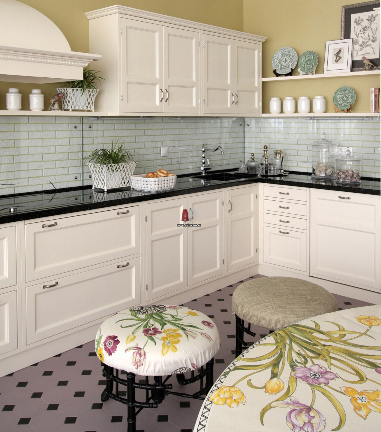 Этот классический материал для отделки кухонных стен идеально подойдет для прованского стиля. Практичная и красивая плитка задаст тон любому интерьеру. Фартук для кухни в стиле прованс обычно отделывают квадратной керамикой, причем размер плиток небольшой — это как раз дань традициям, поскольку раньше изготовить плитку большого размера было очень сложно.