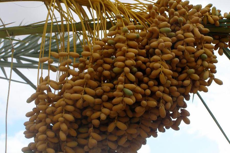 У молодых финиковых пальм грозди плодов часто соприкасаются с землёй