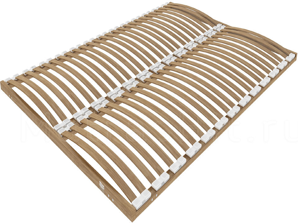 - Широкие ламели (50-70 мм) располагаются в один ряд, в отличие от узких и чаще всего их используют в полуторных или односпальных кроватях. Широкие ламели подходят для использования с беспружинными матрасами, а также с моделями пружин «боннель».