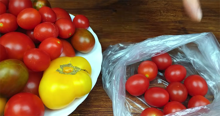 - Возьмите пакет с застежкой-молнией, поместите в него все помидоры и плотно закройте. Поместите эти помидоры в морозильную камеру и дайте им замерзнуть.