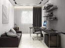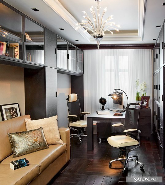 оформление интерьера рабочей зоны, совмещение кабинета и гостиной в одной комнате, дизайн и зонирование маленького зала