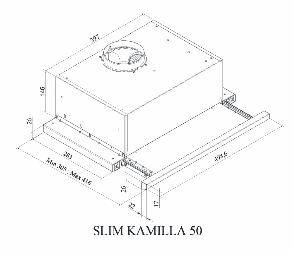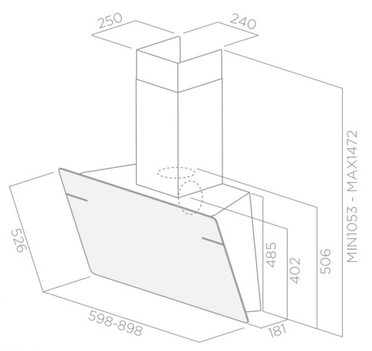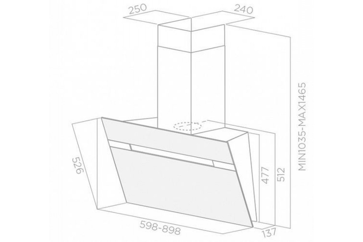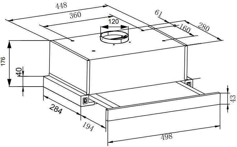 Фактически все купольные вытяжки имеют глубину 50 см.