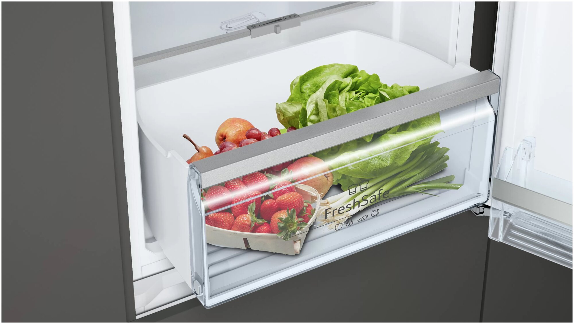 Помимо камеры свежести для фруктов и овощей, в холодильной камере предусмотрены 2 ящика с температурой близкой к нулю, что является оптимальным для длительного хранения мяса и рыбы без заморозки.