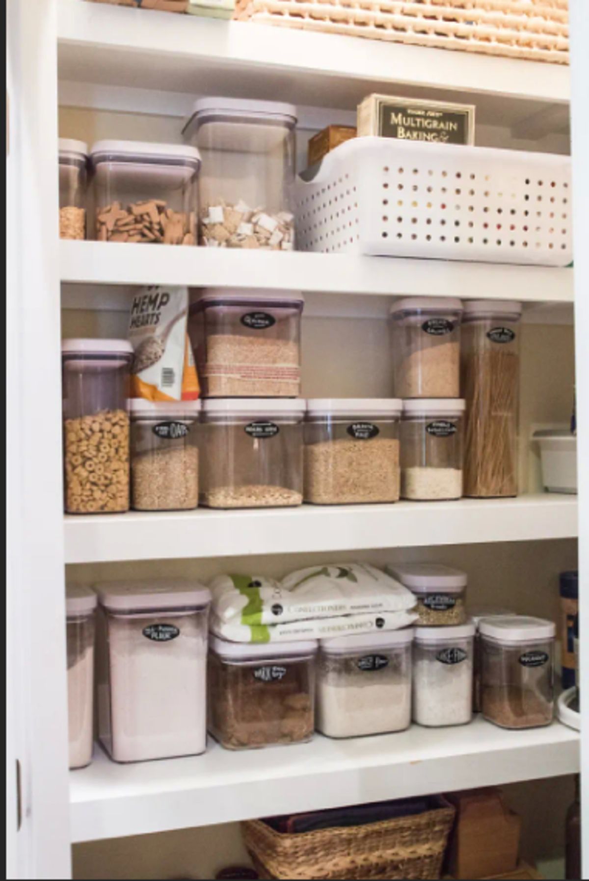 Если вы хотите, чтобы вещи в вашей кладовой выглядели красиво, потяните все вперед, чтобы образовалась красивая линия. Вам не нужна огромная кладовая, чтобы вещи выглядели красиво и хорошо функционировали! Работайте с любым пространством, которое у вас есть, и оно может быть очень большим или маленьким.